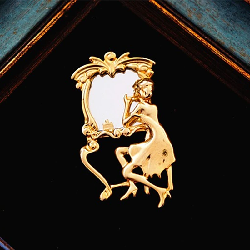 Vintage Classic Women Lady Elegant Dressing Table Mirror Brooches Pins Gold Color Metal Retro Baroque Badges Buckle For Woman