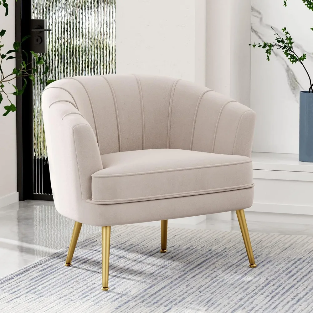 Velvet Accent Chair, Upholstered Modern Single Sofa Side Chair, Comfy Barrel Club Living Room Armchair with Golden Metal Legs fo