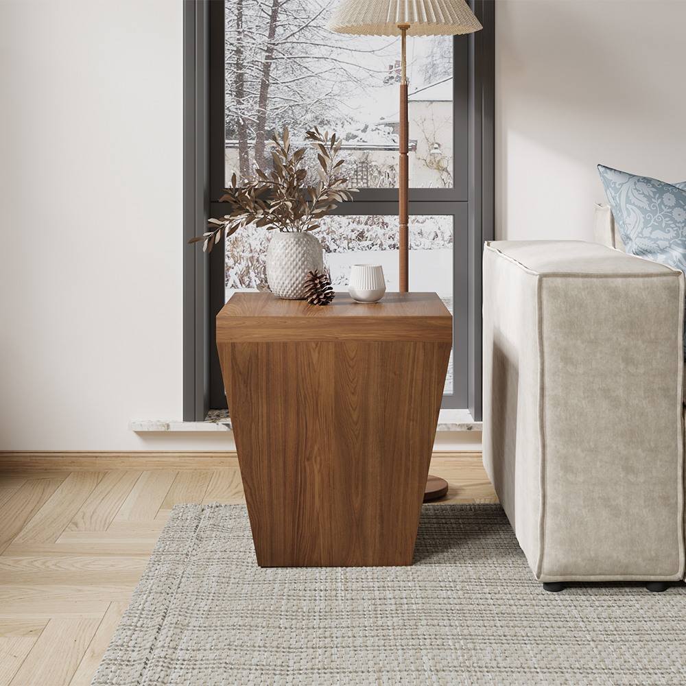 2 PCS 17.72" Walnut Veneer Side Table, Modern Square Drum Side Table, for Living Room