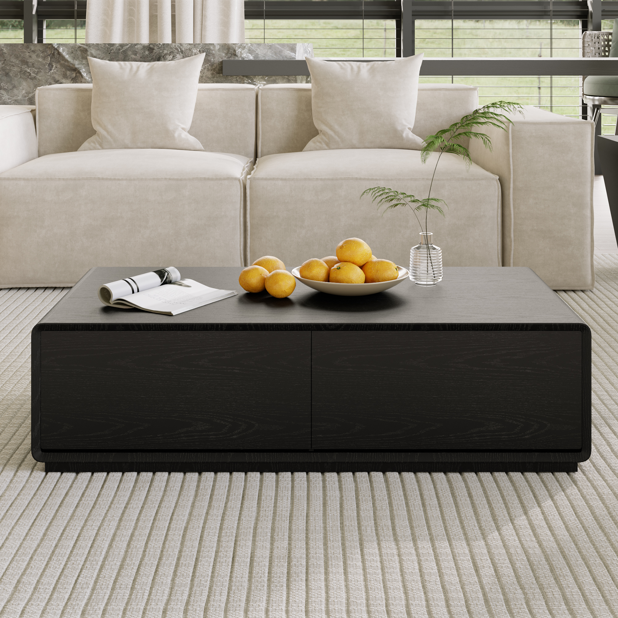 Rectangular Wood Coffee Table, Mid-Century Modern Coffee Table with 4 Drawers, Fully-Assembled, 51", Black