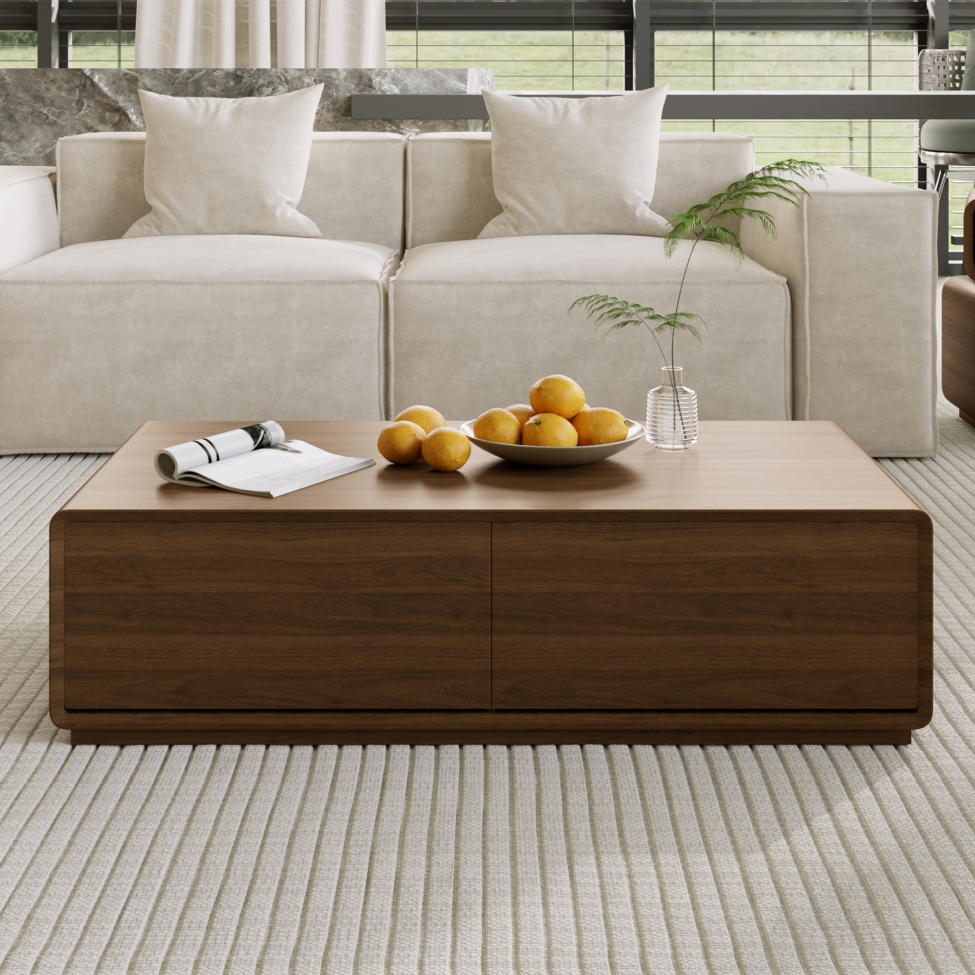 Rectangular Wood Coffee Table, Mid-Century Modern Coffee Table with 4 Drawers, Fully-Assembled, 51.18", Walnut