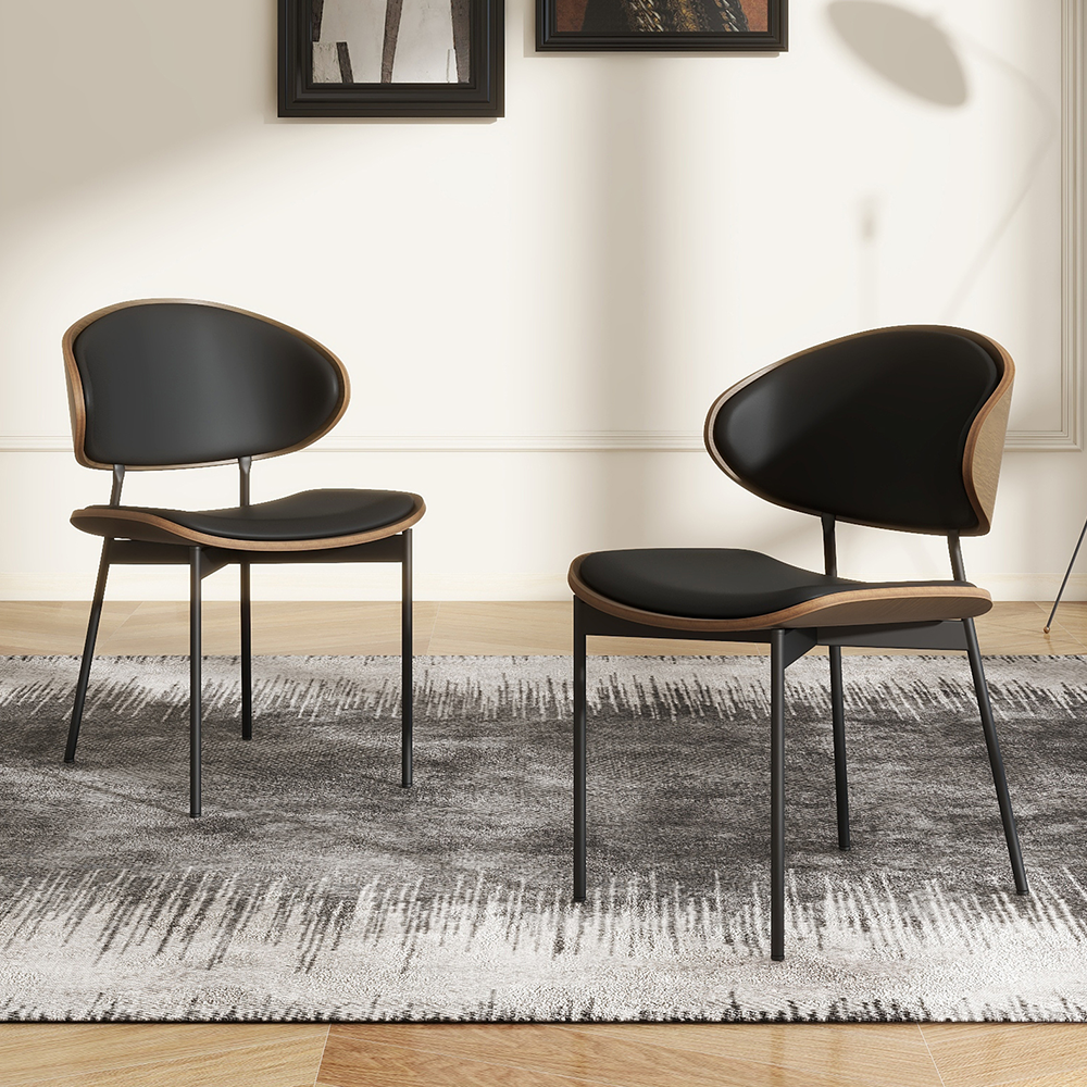 Modern Walnut Armless Dining Chairs (Set of 2), Black PU Leather Dining Chairs, Carbon Steel Legs, Fully Assembled