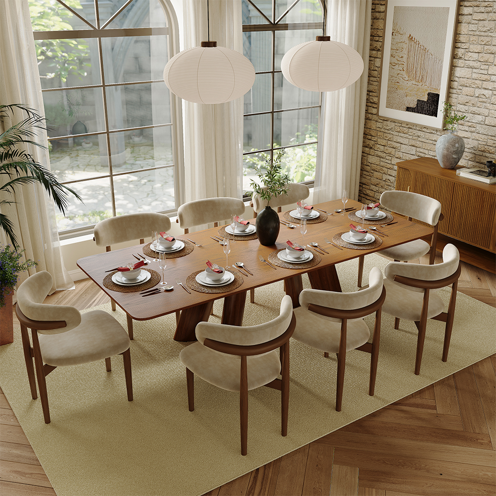 95"Mid Century Modern Walnut Wood Dining Table For 8-10, with Columnar Split Legs
