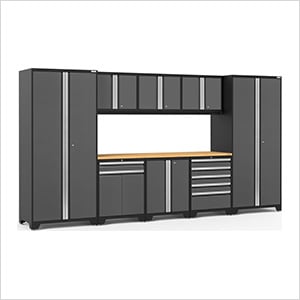 NewAge Garage Cabinets PRO Series Grey 9-Piece Set with Bamboo Top