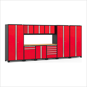 NewAge Garage Cabinets PRO Series Red 10-Piece Set with Bamboo Top
