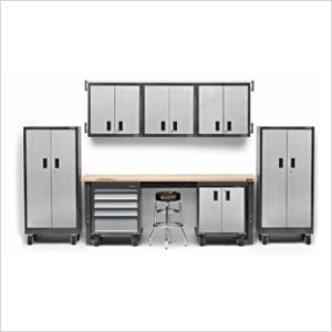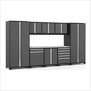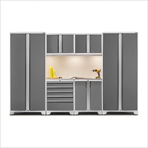 NewAge Garage Cabinets PRO Series Platinum 7-Piece Set with Stainless Steel Top