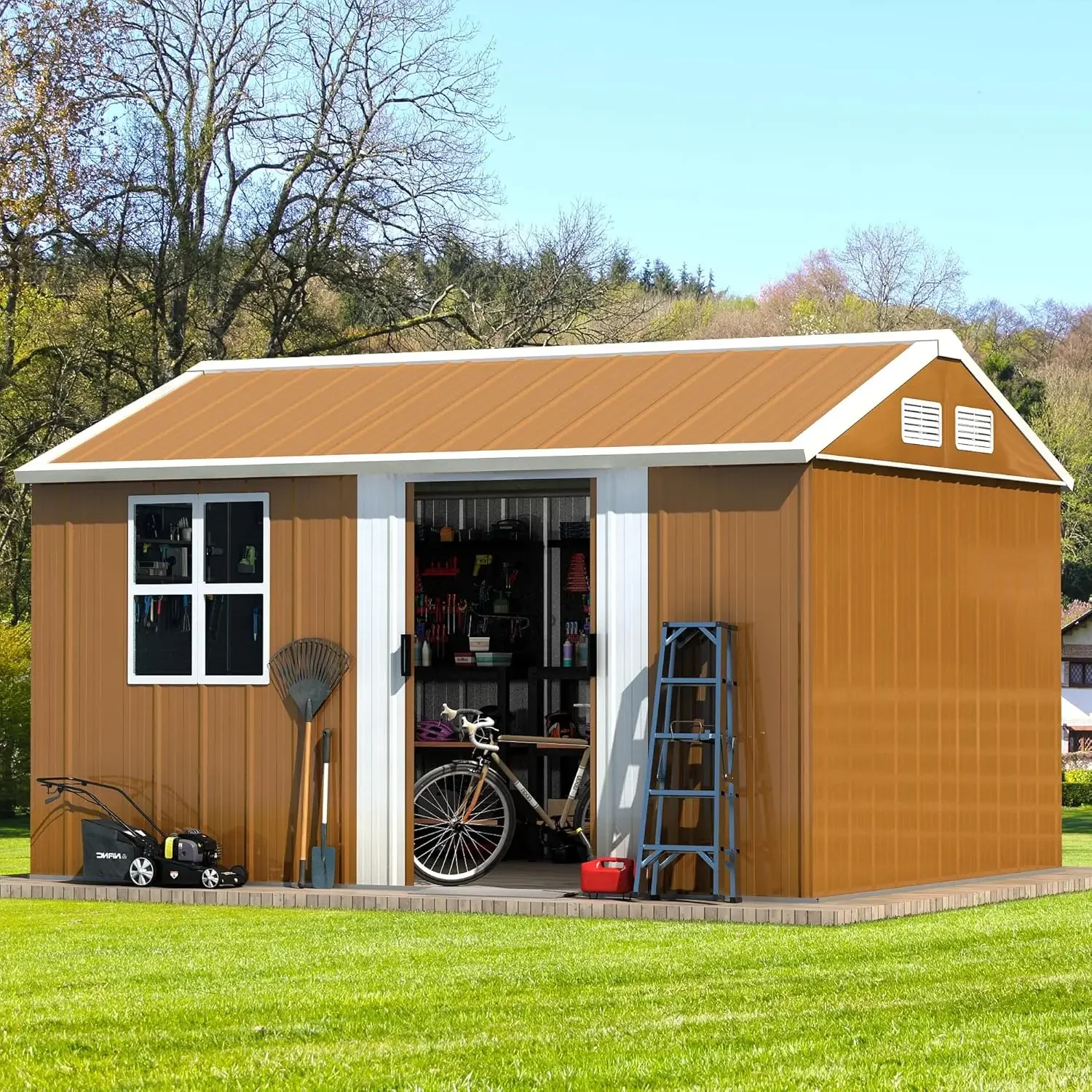 12x10 FT Metal Outdoor Storage Shed, Large Garden Storage Sheds with Windows, Door & Ventilation, Heavy-Duty Outdoor Tool Shed