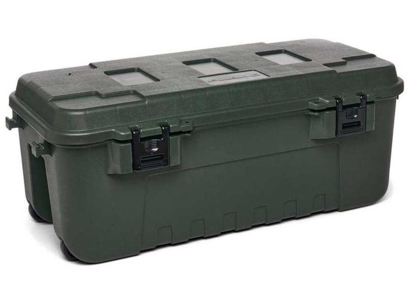 Plano Sportsman's Large Trunk 108 Quart Olive Drab P000060. Ideal for use in the garage attic or work shed; these durable trunks feature molded grooves for easy stacking and tie down points on the side for transporting. Trunks are lockable and...  Read more