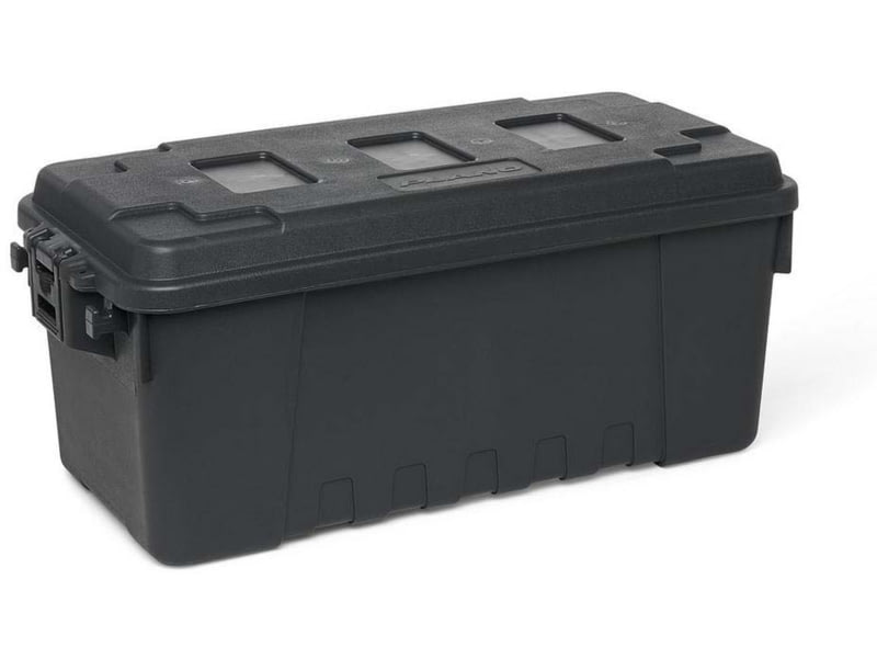 Plano Sportsman's Medium Trunk 68 Quart 1 Charcoal P000027. Ideal for use in the garage attic or work shed; these durable trunks feature molded grooves for easy stacking and tie down points on the side for transporting. Trunks are lockable and...  Read more