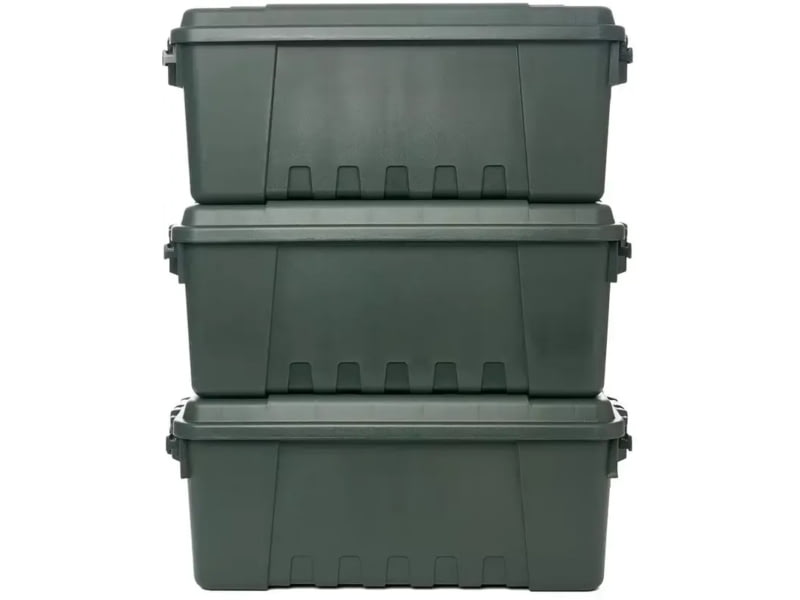 Plano Sportsman's Medium Trunk 68 Quart Olive Drab P000040. Ideal for use in the garage attic or work shed; these durable trunks feature molded grooves for easy stacking and tie down points on the side for transporting. Trunks are lockable and...  Read more