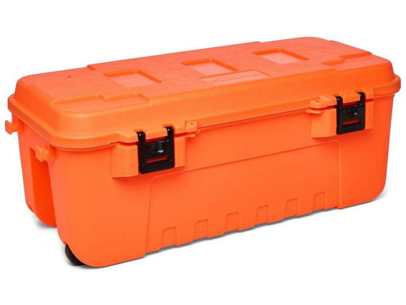 Plano Sportsman's Large Trunk 108 Quart Blaze Orange P000046. Ideal for use in the garage attic or work shed; these durable trunks feature molded grooves for easy stacking and tie down points on the side for transporting. Trunks are lockable and...  Read more