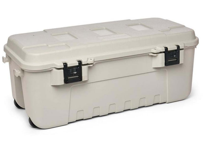 Plano Sportsman's Large Trunk 108 Quart Charcoal P000061. Ideal for use in the garage attic or work shed; these durable trunks feature molded grooves for easy stacking and tie down points on the side for transporting. Trunks are lockable and airline...  Read more