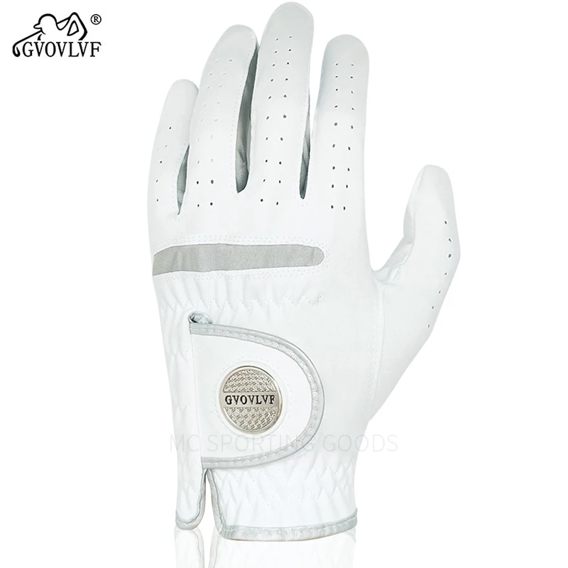 1pc Men's Golf Glove Micro Soft Fabric Breathable Golf Gloves With Magnetic Marker Replaceable White Glove