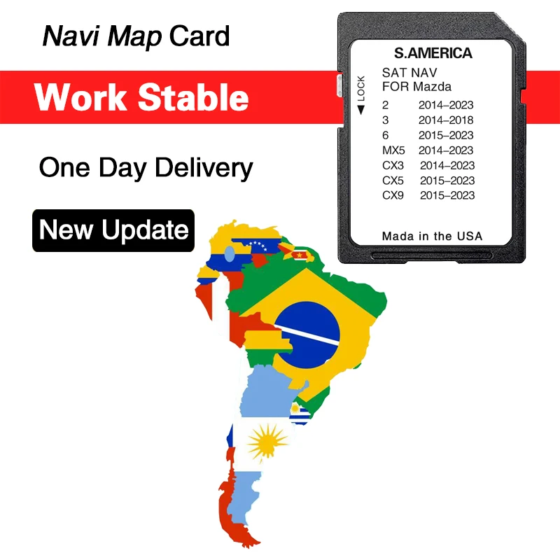 South America Map Sat Nav Naving GPS Connect1 Update Software Version Navigation SD Card for Mazda 2/3/6/MX5/CX5/CX9 Vehicle 8GB