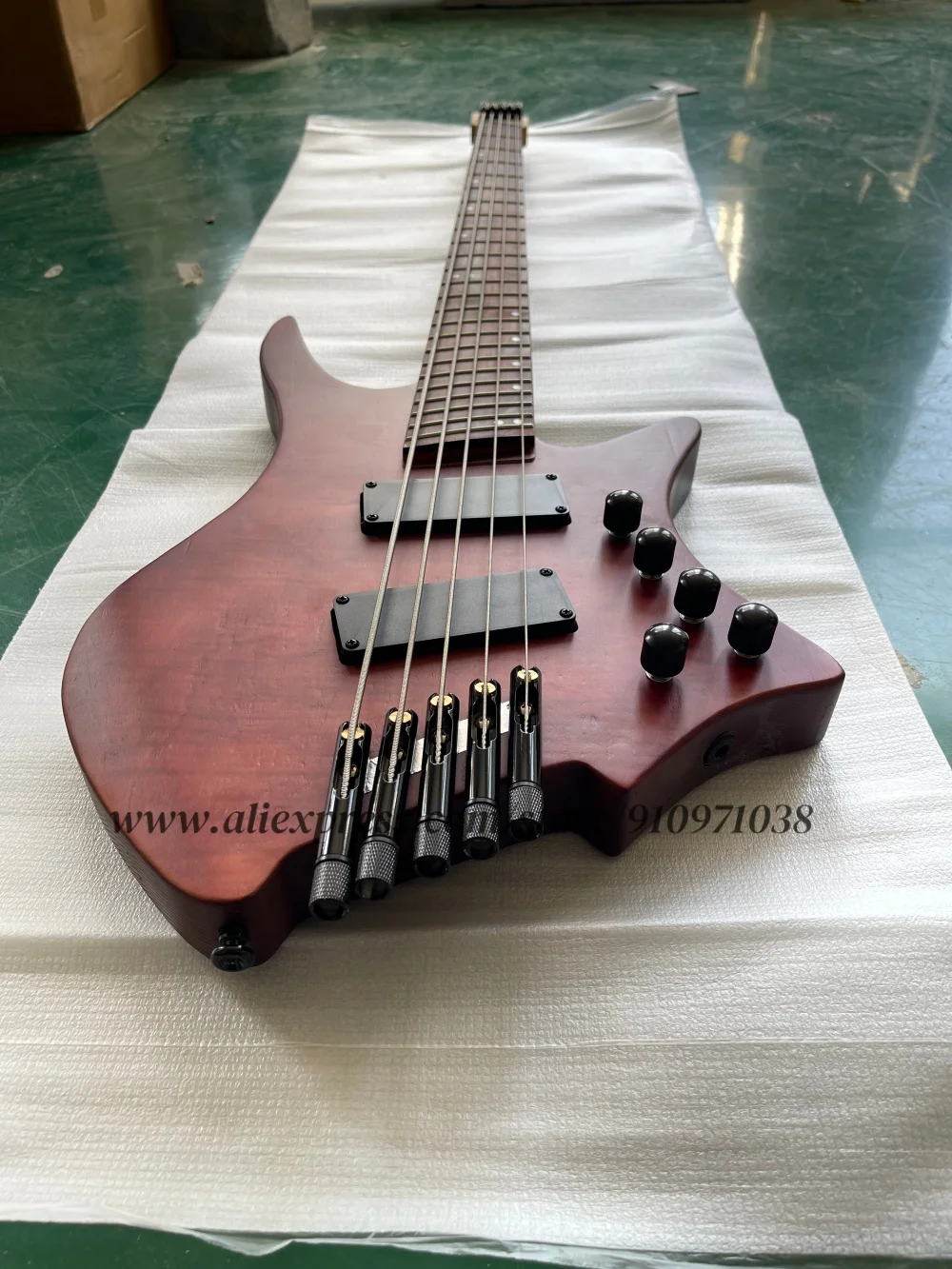 Matte brown bass, 5 strings bass, ash body Flamed maple top, rose fingerboard, high-quality bridge, customizable