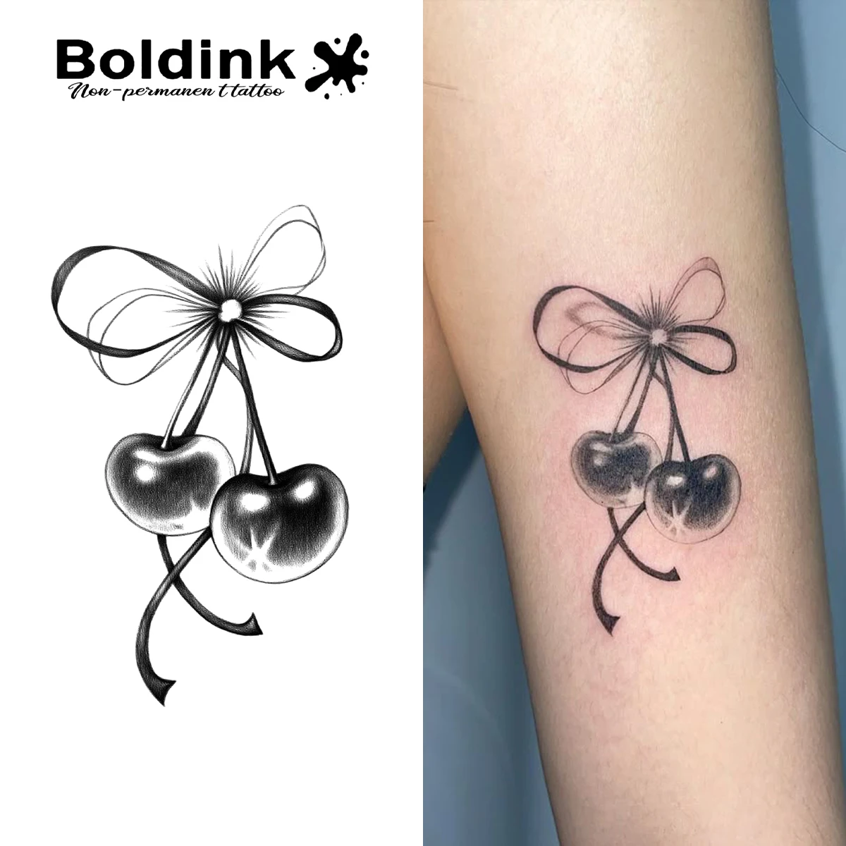 BOLDINK Cherry Bowknot Moisturizing Tattoo Sticker Unisex Fashion Design Colorful Easy Apply Waterproof Lasts 1-2 Week