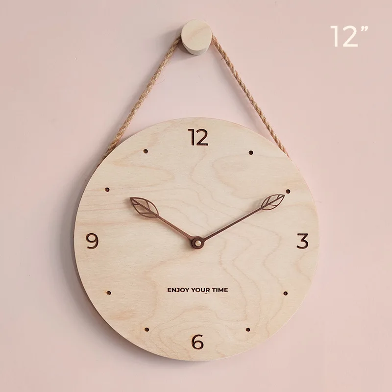 Simple Style 12 Inches Wooden Hanging Rope Wall Clock Watch Living Room Office Cafe Home Decoration Art Large Wall Clock