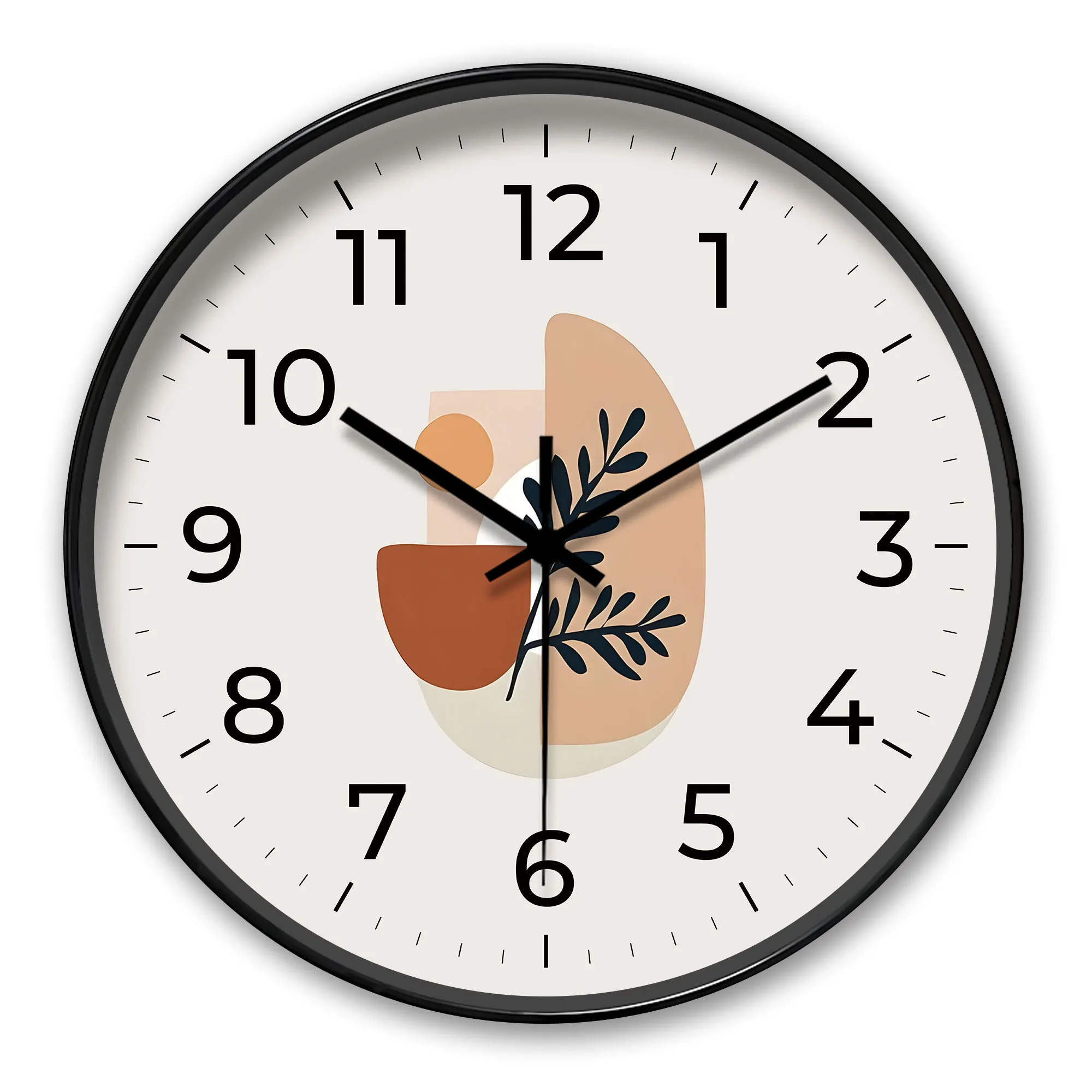 Round Minimalist Abstract Wall Clock, Geometric & Plant Decor (Batteries Not Included), 10-16 Inches