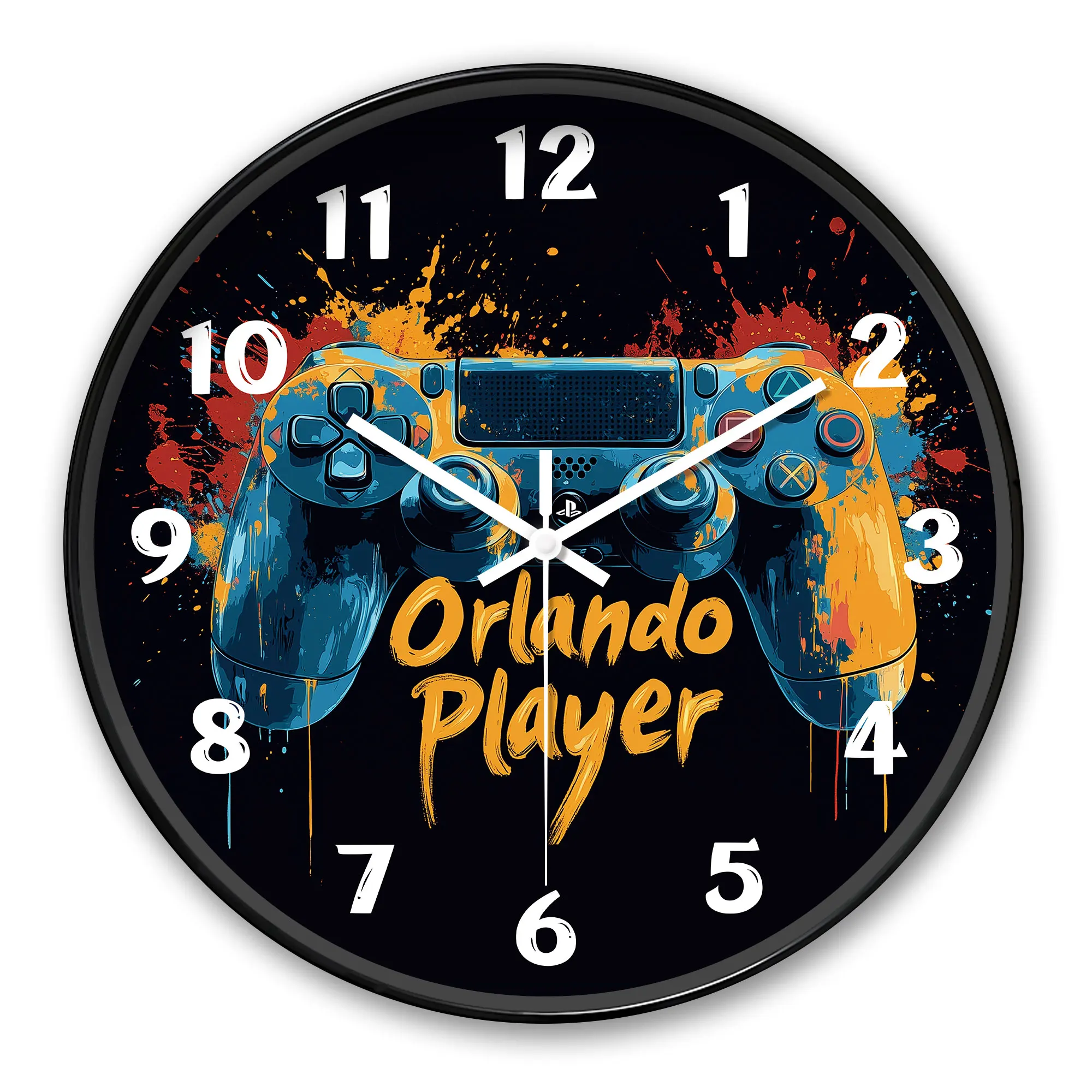 Round Gaming - Themed Wall Clock, "Orlando Player" Controller Decor (Batteries Not Included), 10-16 Inches