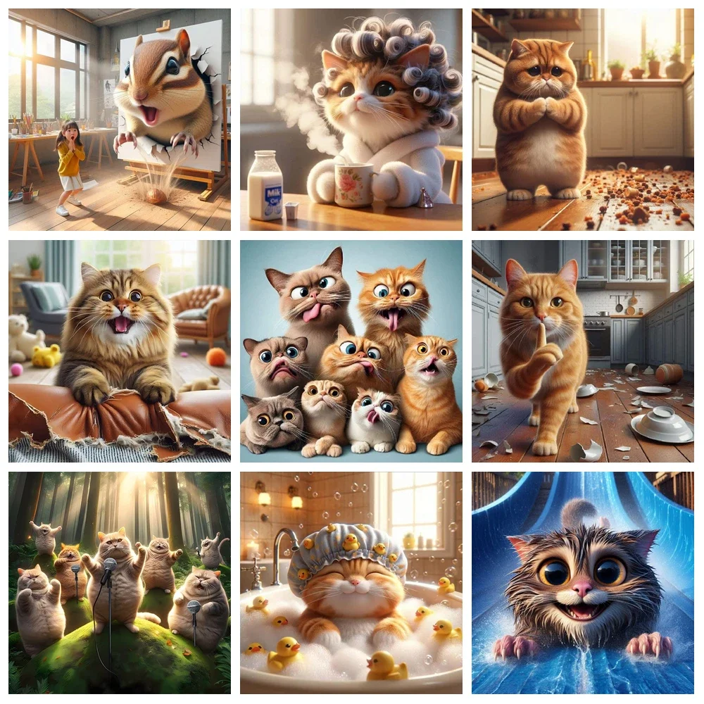 5D DIY Diamond Painting Cat lovely Animal Cross Stitch Picture Rhinestones Diamond Embroidery Full Round Home Decorative