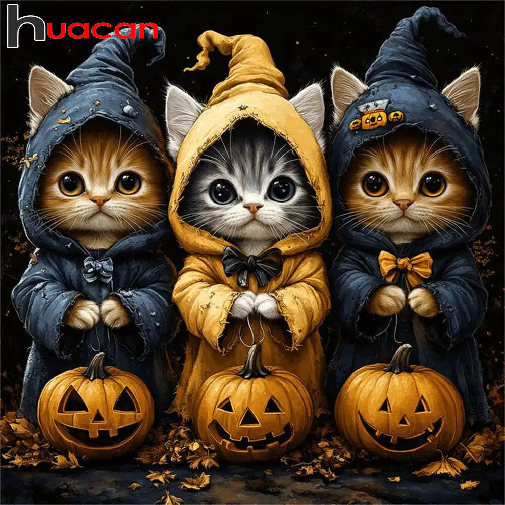 Huacan Halloween Diamond Painting 5D DIY Pumpkin Cats Diamond Mosaic Full Square Round Animal Art New Arrivals