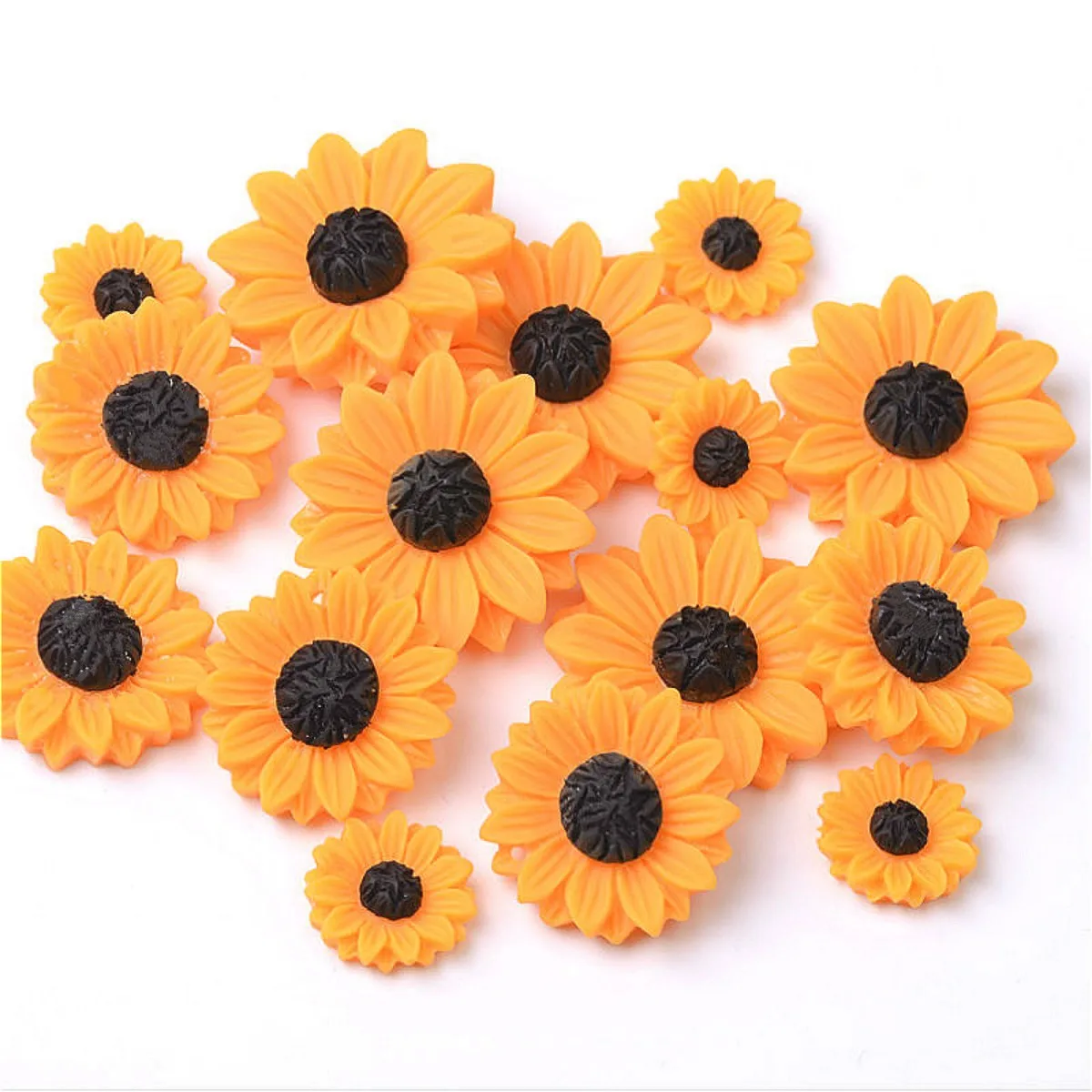 20pcs 15mm/18mm/25mm Resin Sunflower Yellow Daisy Flatbacks Crafts Embellishments Flower Cabochon For Scrapbooking DIY Deco