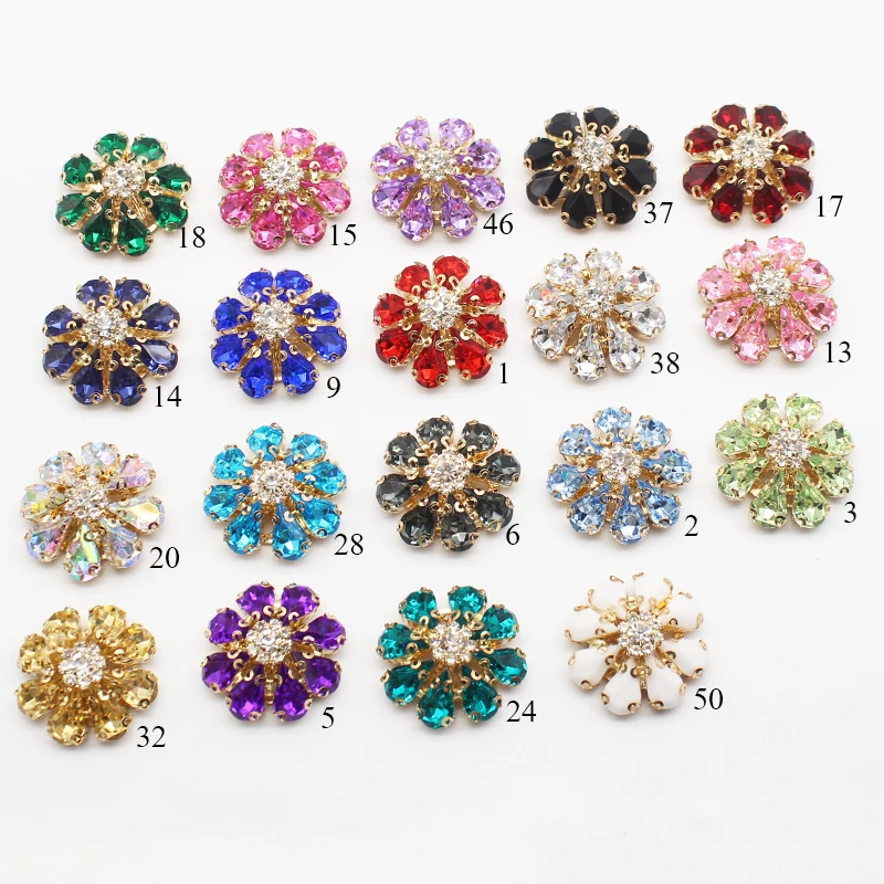 3Pcs/Lot 30MM Water Drop Acrylic Metal Flat Bottom Diamond Button Decoration DIY Gold-Plated Flower Clothing Sewing Accessories  Read more