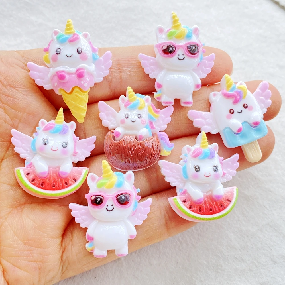 10PCS Resin Cartoon Fruit Winged Unicorn Flatback Home Decor Figurine Scrapbook DIY Accessories Craft  Read more