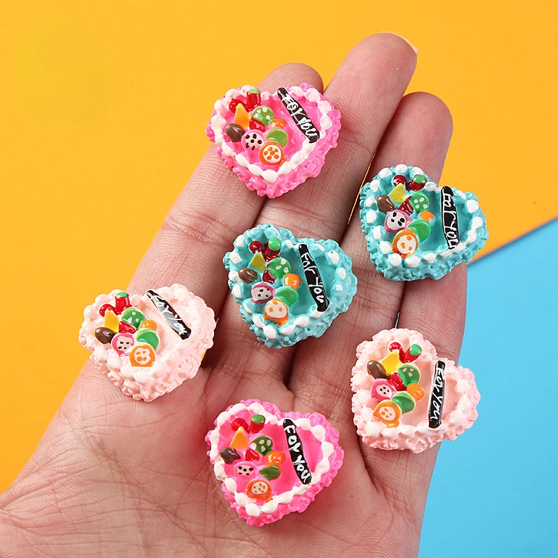 10pcs Kawaii Resin Mini Heart Shape Cake Miniature Accessories Scrapbooking Embellishment Material Flatback Cabochon Diy Crafts