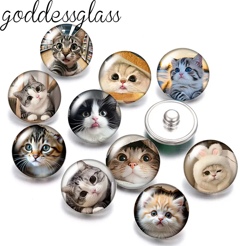 Funny Cat Face Lovely Pet Love Cats 10pcs 12mm/18mm/20mm Round photo glass cabochon flat back Making findings DIY snap buttons