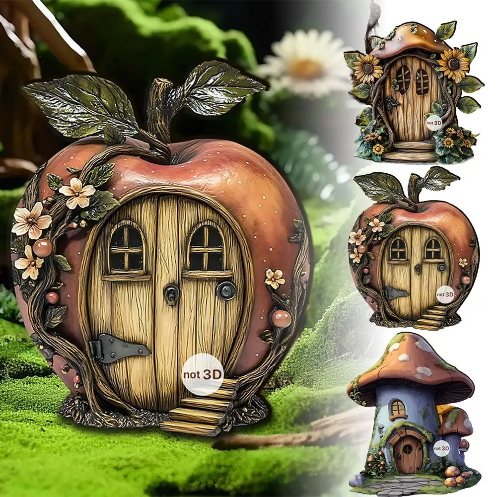 Mini Wooden Fairy Door - Enchanted Garden Decor for Tree Trunk, Flat Back Gnome Home, Whimsical Indoor Outdoor Ornament