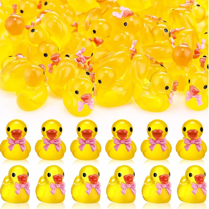 5/10 Pcs Tiny Miniature Ducks with Pink Bow, Fairy Garden Animals for Micro Landscape Potted Plant DIY Craft Home Ornament