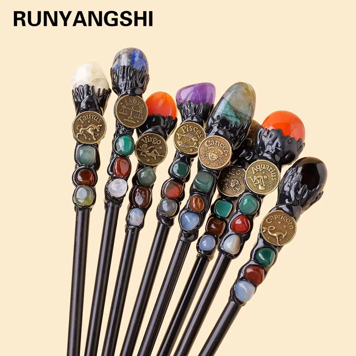 1PC 12 Zodiac Signs Natural Stones Magic Scepter Amethyst Citrine Fairy Lucky Gem Scepter Props Accessories