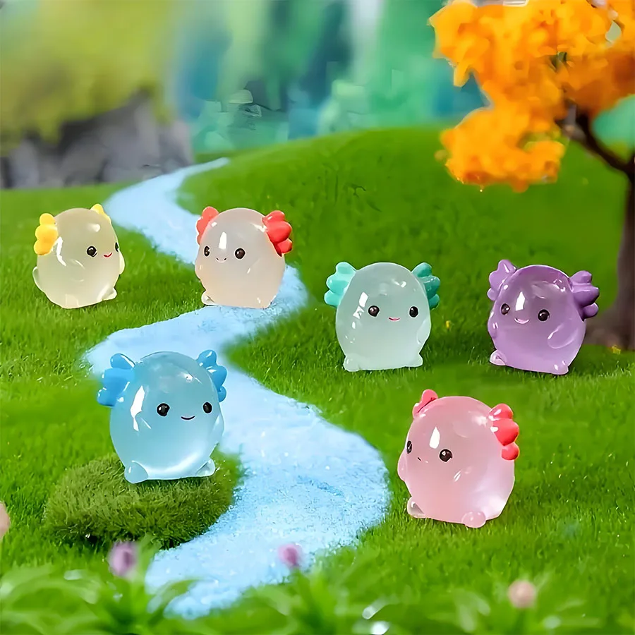 10/20pcs Luminous Mini Resin Axolotl Miniature Glow in The Dark Axolotl Tiny Animal Figures Ornament for DIY Fairy Garden