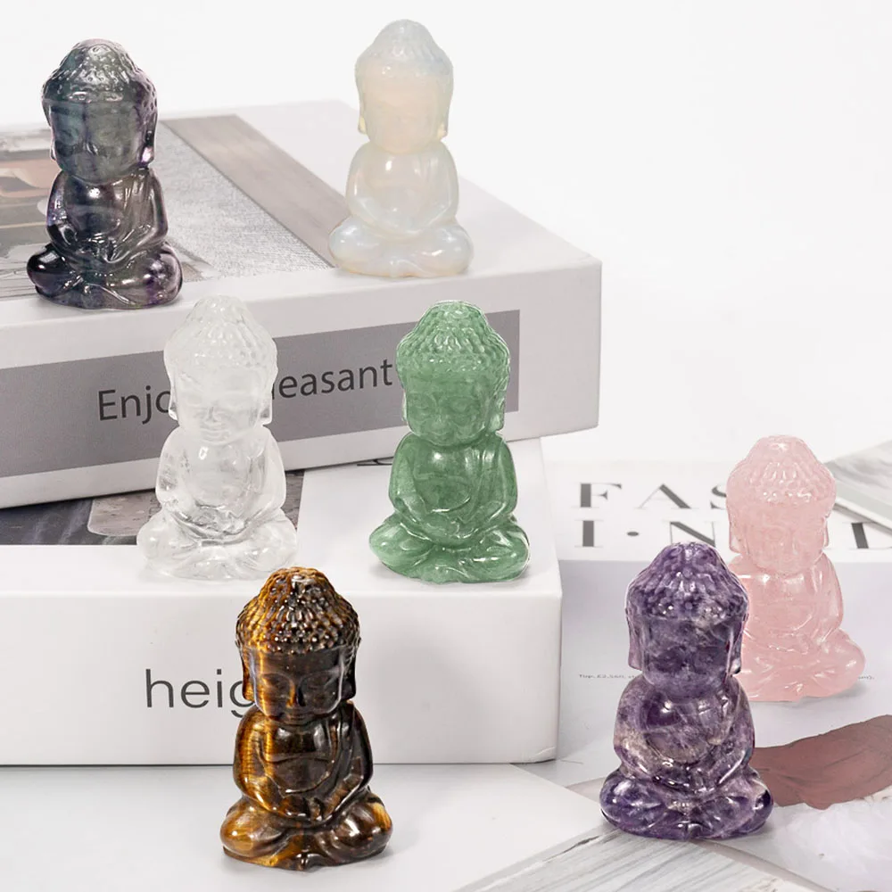 2" Sitting Buddha Statue Natural Stone Healing Crystal Amethyst Quartz Tiger Eye Lots Wholesale Luck Crafts Home Decoration