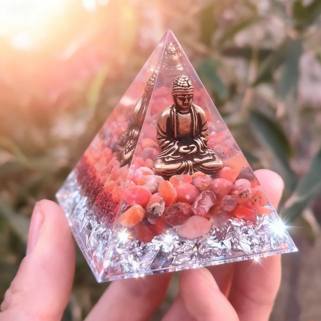 1pc Pyramid Crystals , Pyramid Ornament Buddha Statue Gravel Resin, Home Desktop Handmade Ornaments, Crystal Organite Pyramid  Read more