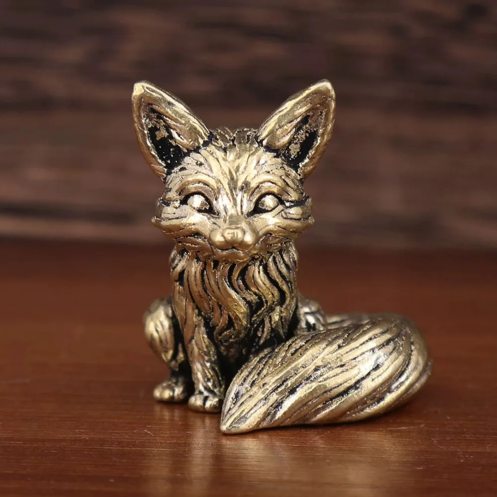 Brass Fox Statue Cute Fox Miniature Figurines Desk Ornament Decorations Accessories Copper Animal Sculpture Home Decor Crafts  Read more