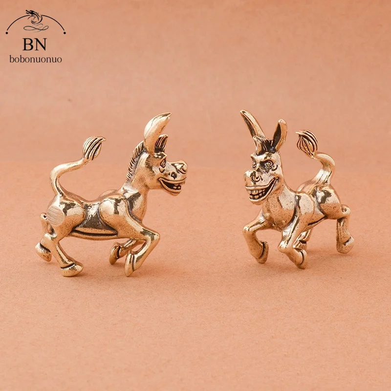 Solid Brass Donkey Small Ornament Antique Copper Animal Equus Asinus Miniature Figurines Home Desktop Decoration Accessories  Read more