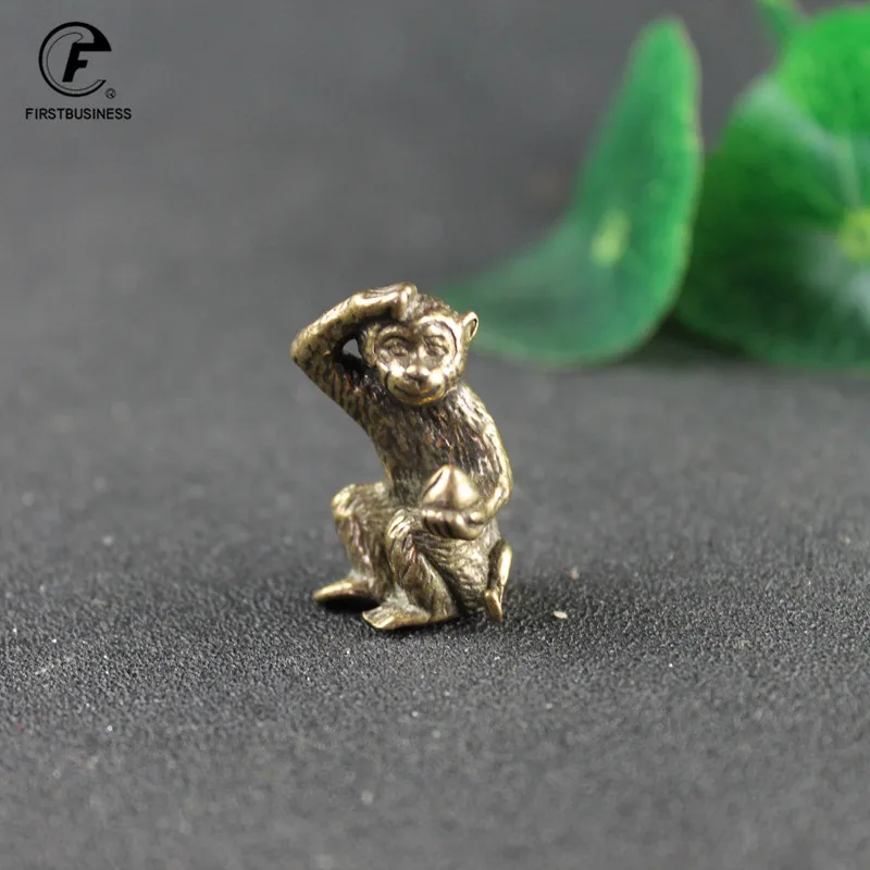 Antique Mini Solid Monkey Holding Peach Figurines Miniatures Tea Pet Ornaments Copper Zodiac Animal Statue Table Decorations  Read more
