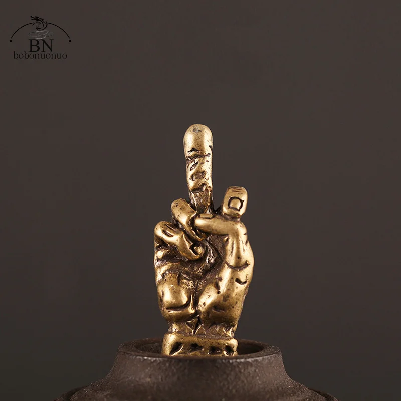 Handmade Vintage Copper Vertical Middle Finger Hand Gesture Creative Brass Office Decoration Tea Pet Ornaments Car Decor Gifts
