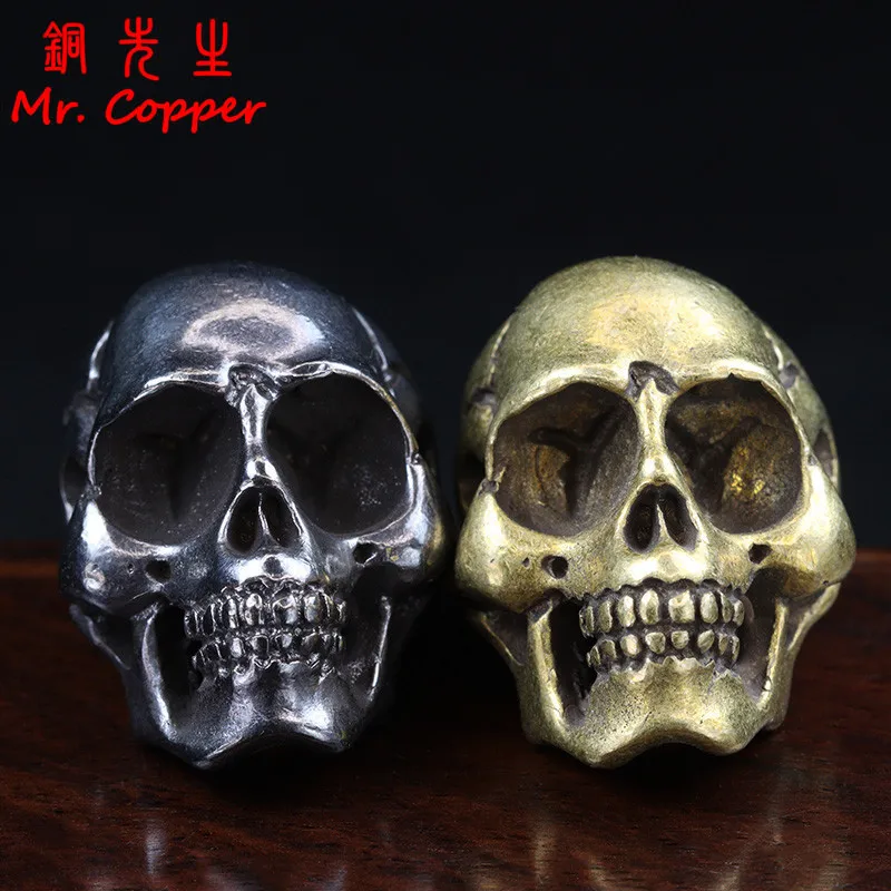 Punk Copper Skull Head Miniatures Figurines Desk Decorations Vintage Brass Home Decor Ornaments Crafts Handmade Antique Men Gift  Read more