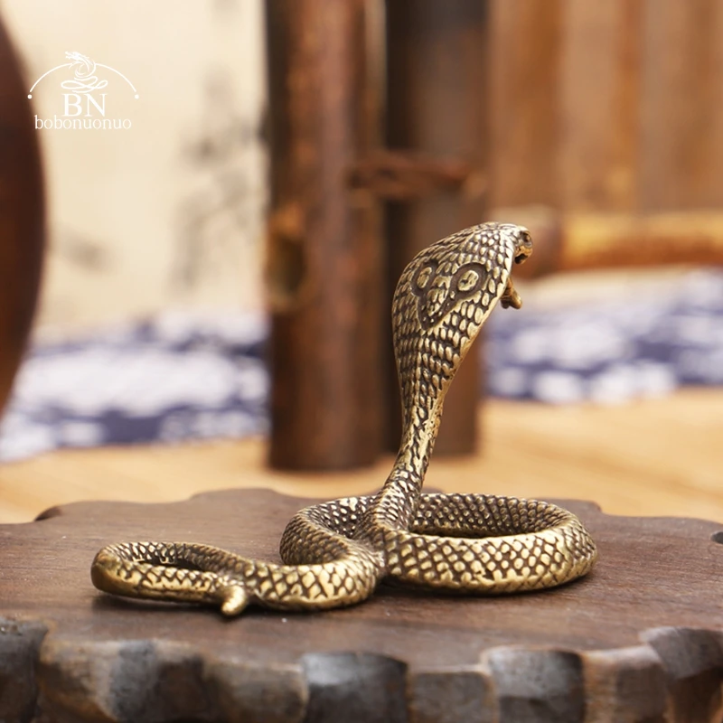 Antique Bronze Cobra boa Snake Statue Miniature Figurines Copper Zodiac Animal Desk Decorations Tea Pets Ornaments Brass Crafts  Read more