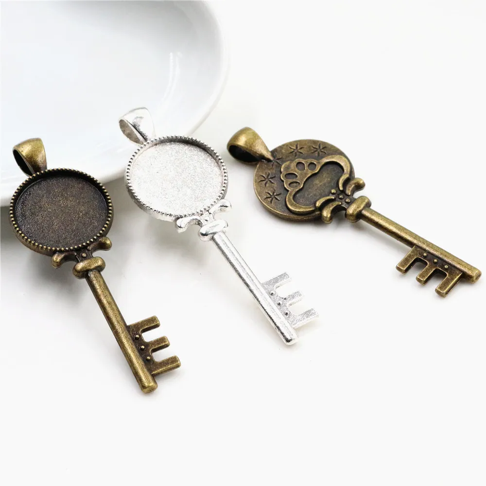 10pcs 18mm Inner Size Antique Bronze And Silver Plated Mushroom key Style Cabochon Base Cameo Setting Charms Pendant