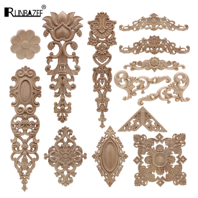 1Pc Unique Natural Floral Wood Carved Wooden Figurines Crafts Corner Appliques Frame Wall Door Furniture Woodcarving Decorative