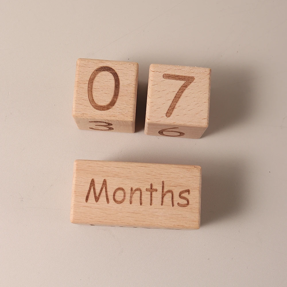 Baby Photo Shoot Essentials – Month & Milestone Cube Props Monthly Growth Blocks beech wood