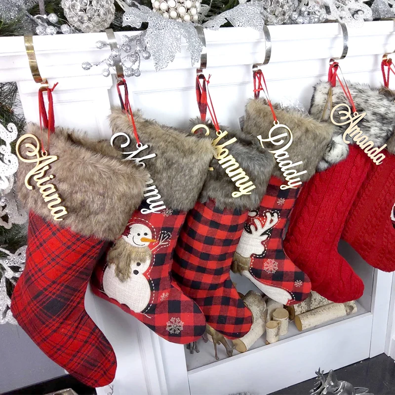 Christmas Stocking Name Tags Personalized Stocking Wood Letters Custom White Name Tags Christmas Rustic Country Farmhouse cutout