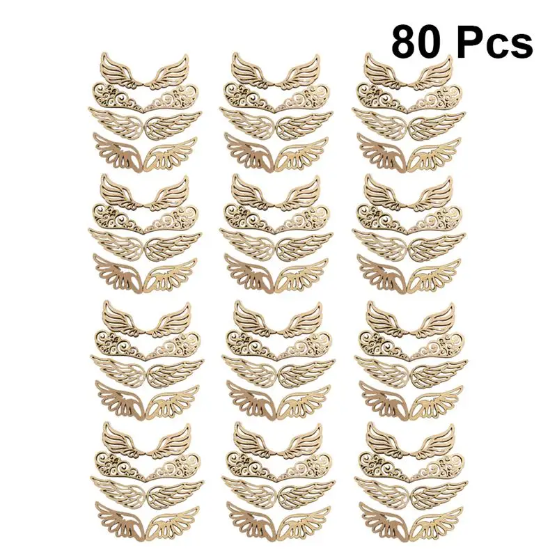 80pcs Angel Wings Wooden Patches Christmas Decorations Angel Wings Shape Wood Slices No Hole Wood Chips Angel Wing DIY Crafts