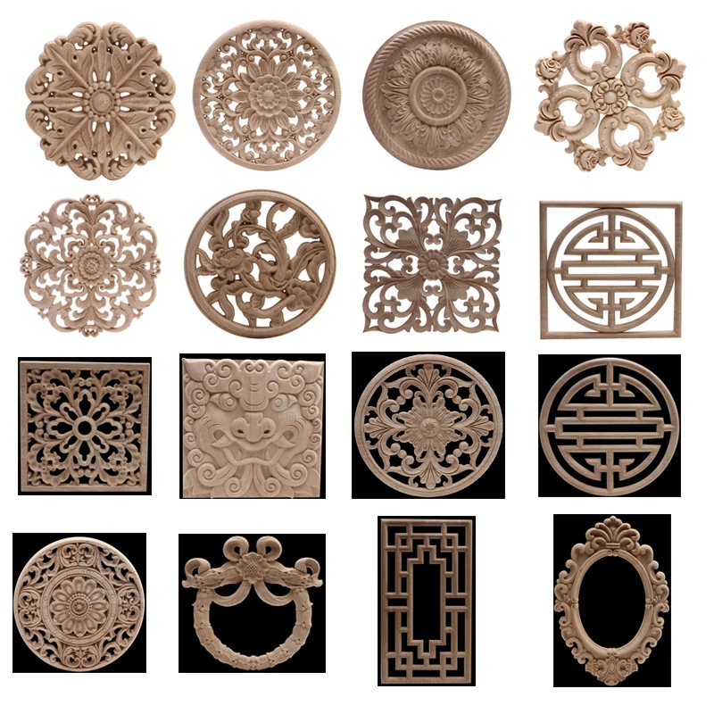 Wooden Appliques for Furniture Unpainted Wood Carved Decal Corner Onlay Figurines for Decor Home Decoration Wood Flower Crafting