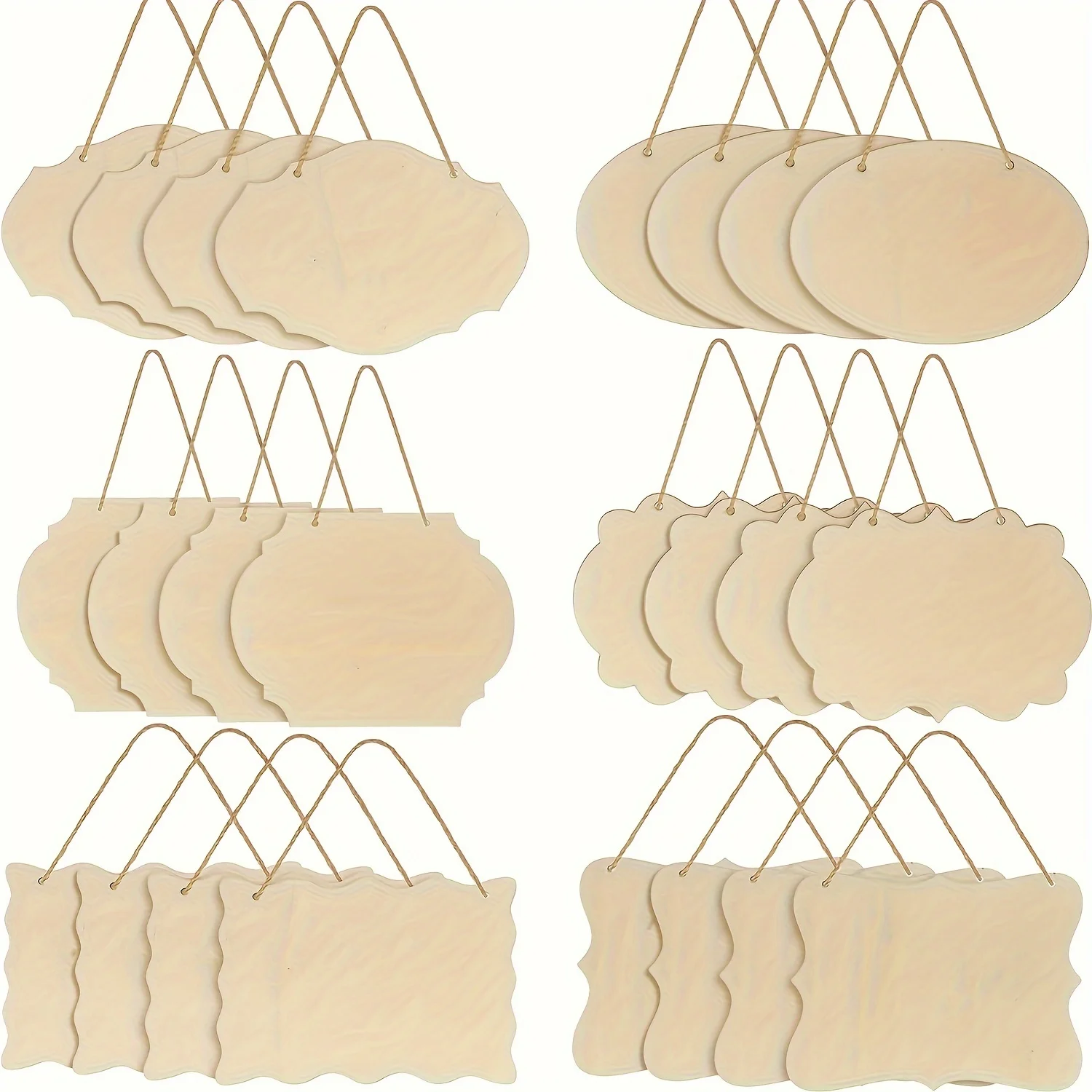Unfinished Hanging Wood Sign Rectangle Wood Blank Plaque Hanging Wood Sign with Rope for Pyrography, Painting, Writing, DIY Craft
