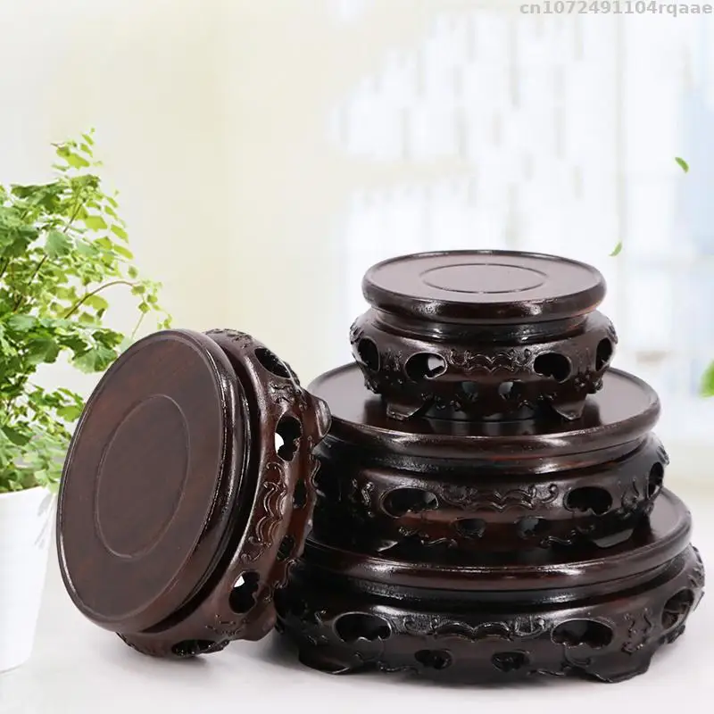 Ebony Wood Carved Base Vase Base Bracket Stone Teapot Bonsai Flower Pot Incense Burner Buddha Wooden Pedestal Crafts Home Decor